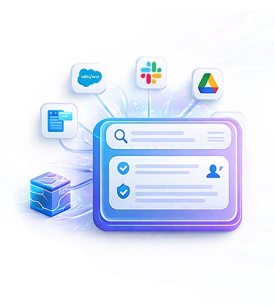 Google Drive, Salesforce, ServiceNow, Microsoft Teams, HubSpot, OneDrive, Jira, Zendesk, Slack, Notion, Confluence, and custom enterprise systems.